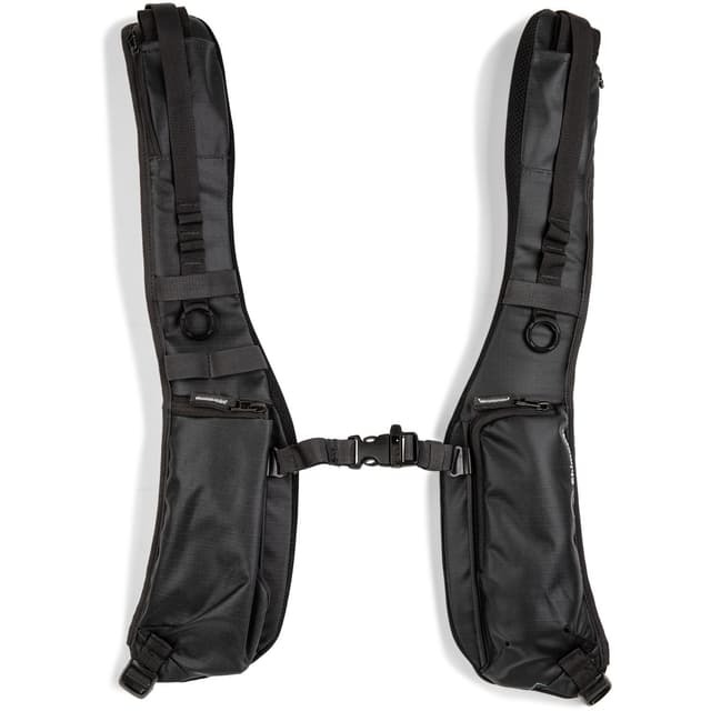 Disse svarte Shimoda Designs-ryggsekkstroppene for menn kan erstatte ryggsekkstroppene som er utstyrt med en Shimoda Designs Action X30-ryggsekk, Action X50-ryggsekk eller Action X70-ryggsekk. Den vestlignende formen på menns ryggsekkstropper er designet for å gi større demping og komfort mens du bærer tyngre belastninger, og hjelper deg med å fordele vekten over brukerens bryst i stedet for å la den trekke tilbake på skuldrene.