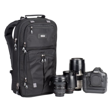 Think Tank Shape Shifter 17 V2.0 er en revolusjon innen ryggsekkdesign. Den utvider og trekker seg sammen for å holde kamerahus m/grep og en bærbar PC.