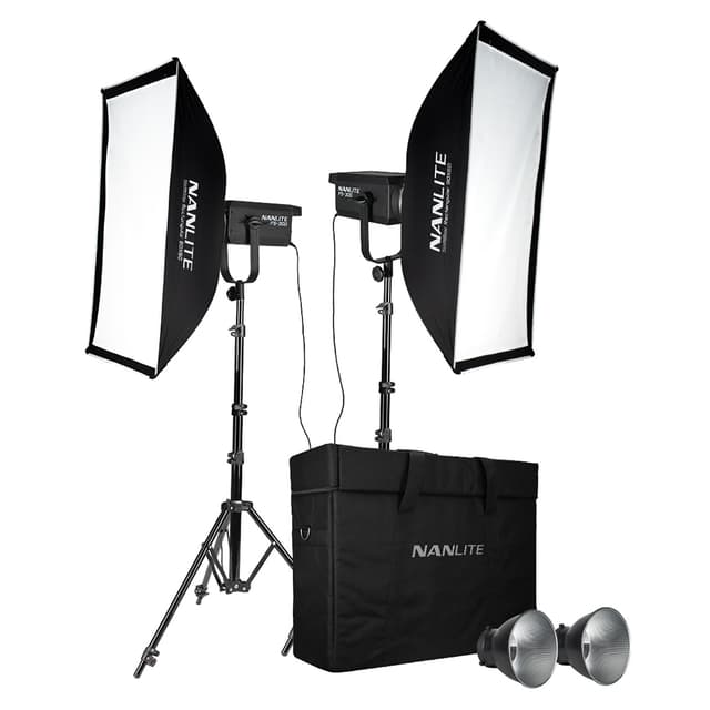 Nanlite FS-300 2-Light Studio Kit for både video og fotografer som trenger studiokvalitetslys. Settet inneholder to FS-300 LED monolights, hver med en 90x60 softbox og en 55 graders reflektor. 2 LS 186 lysstativ og en bæreveske.
