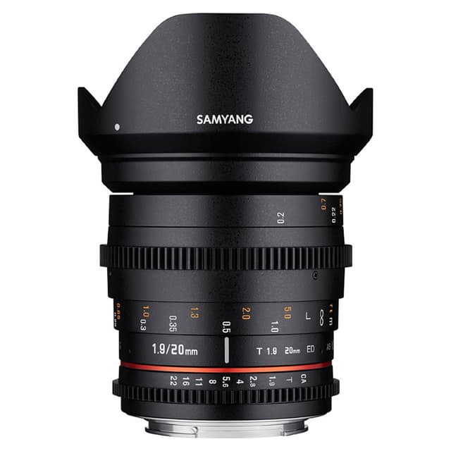 Samyang 20mm T1,9 VDSLR kompakt objektiv til DSLR-kameraer med bred betrakningsvinkel som betoner ute-av-fokus-effekten og 2 asfæriske linser og 3 Extra-low dispersion linser. I tillegg tilbyr objektivet lav forvrengning og klar bildekvalitet.