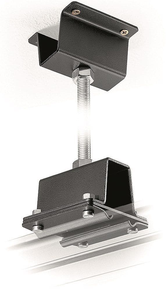 Skinnemonteringssett med M12 Stud. Bestående av en brakett som skal festes til taket med 4 skruer, en 1 METER lang M12-stang helt gjenget, 4 M12 muttere og en brakett for skinnens armatur.