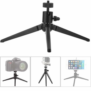 Lite og bærbart kamerastativ som lett passer i pakken og veier bare 90 g. Avhengig av benvinkelen kan du justere høyden. Helt brettet blir de en selfie-pinne.