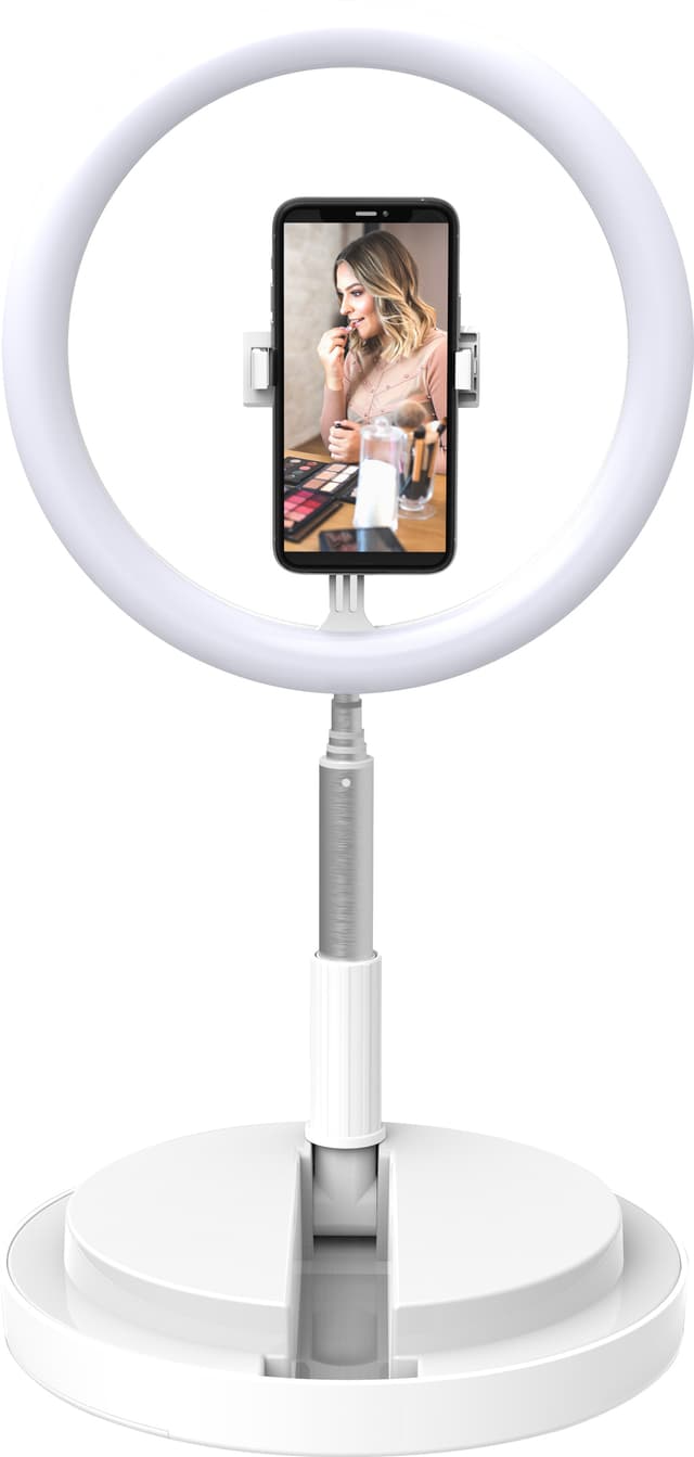 Digip Invisilight stativ og LED-ringlys er en stilig måte å lyse opp dine videokonferanser. Utnytt ditt smarttelefonkamera og lys opp opptakene ved bruk av 120 LED-dioder som gir en belysning med 3100K til 6500K justerbar fargetemperatur.