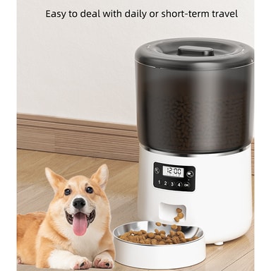 Med en sjenerøs kapasitet på 4 liter, rommer materen rikelig med mat til kjæledyret ditt, noe som reduserer påfyllingsfrekvensen. Perfekt for travle timeplaner og kortsiktige reiser.Les mer om produktet