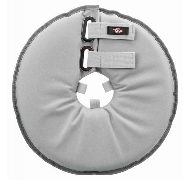 Beskyttende krage mykt materiale gjør det behagelig å ha på seg uten å fange på eller banke mot gjenstander kjæledyret kan se og høre uten å bli svekket mating, drikking, snusing og liggende mulig uten problemer med hemper for halsbånd cm informasjon viser halsomkrets/kragelengde elementer nei . 19421 og 19422: også egnet for katter polyester/skum farge: grå samsvarer med dyrevelferd etter § 18 (AT) Den store radiusen til beskyttelseshalsen begrenser synet litt. Dette kan bli en fare i trapper. Derfor bør trapper gjøres sikre under tiden kjæledyret har på seg halsbåndet.