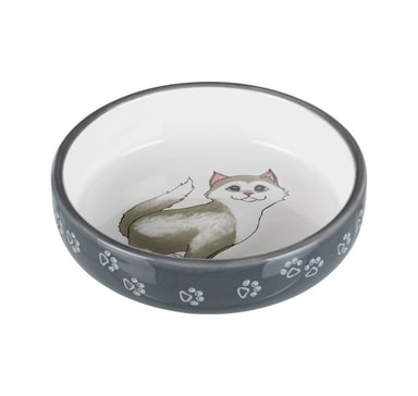 • Katteskål for kortnesede raser, keramikk, 0,3 l/ø 15 cm, grå/hvit, Trixie