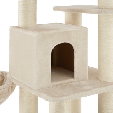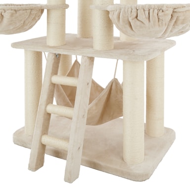 Dette solide kattetreet fra tectake er et eksklusivt klatreparadis som tilbyr katter i alle størrelser tre nivåer å utforske og nyte. De skranglende balllekene lover moro og spenning, mens de hengende sengene og hengekøyen er et ideelt sted for kjæledyret ditt å slappe av. Hver enkelt stolpe er dekket av slitesterk sisal, som er perfekt for å slipe klør, og gir andre møbler en sårt tiltrengt pause fra ripene! Katten eller kattungen din vil elske å utforske de mange nivåene og områdene i dette tårnet og finne sin favorittskraper å sette seg fast i. Dette aktivitetssenteret har tykkere stolper og større senger enn andre kattetrær, noe som gjør det også egnet for større katter. Eksepsjonell holdbarhet og stabilitet gjør at dette kattetreet fra tectake skiller seg ut - det perfekte valget for eventyrlystne huskatter.