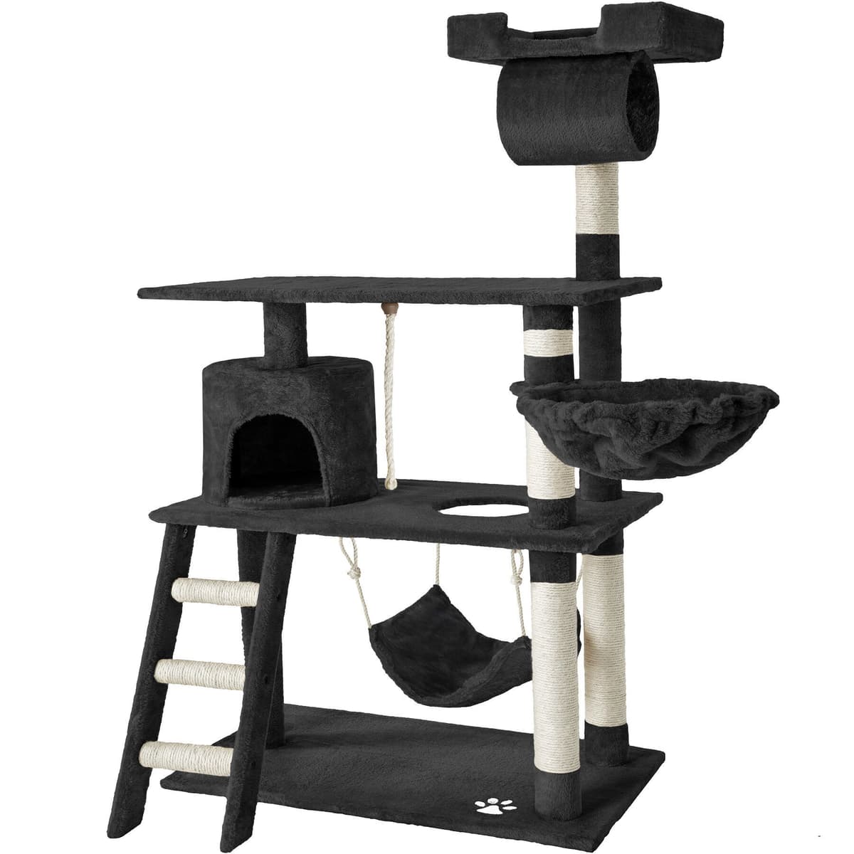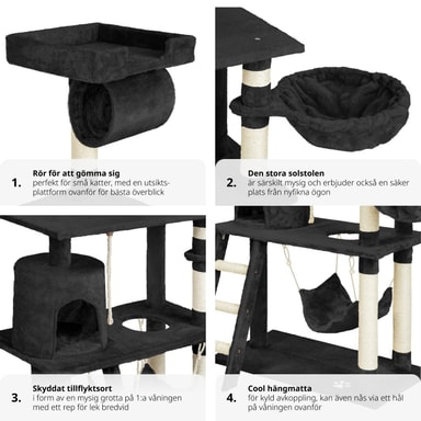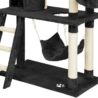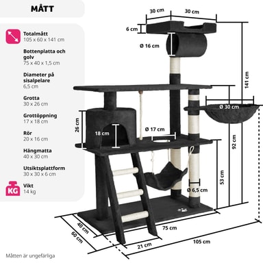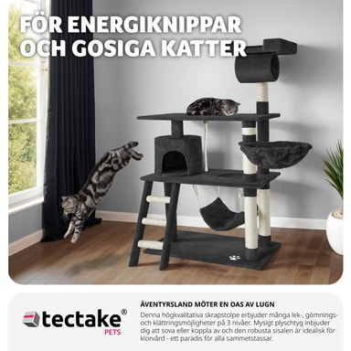 Dette vakre og praktiske kloretreet kommer katten din til å elske. Kloretreet gir optimale muligheter til å leke, kvesse klørne eller trekke seg tilbake. Via trappen kan den lille katten din nå sin hvilehule, som man finner i den første etasjen.Les mer om produktet