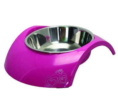 En vakkert formet bolle med plastkropp, inni som går en standard bolle i rustfritt stål. Så du får to Rogzi-skåler som ikke bare har et interessant design, men som også er ekstremt komfortable. De kan brukes både sammen og hver for seg, for eksempel kan den ene brukes til mat og den andre til vann. Den ytre plastskålen har en gummibunn som hindrer bollen i å skli over gulvet. Skålene kan vaskes i oppvaskmaskin.
