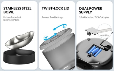 Wi-Fi-aktivert smart kjæledyrmater, 4L hundematere med skål i rustfritt stål Sort