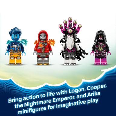 • FIRE LEGO® DREAMZzz™ MINIFIGURER – settet inkluderer minifigurer av Logan, Cooper, Marerittkeiseren og Arika, som inspirerer barn til actionfylt og fantasifull late som-lek