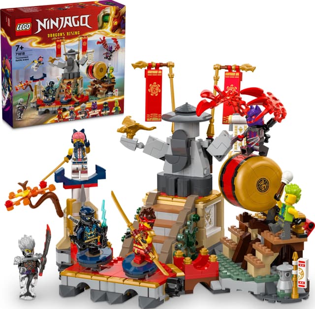 • NINJAGO® kamplekesett for barn – jenter og gutter fra sju år kan gjenskape heftige actionscener fra sesong 2 av TV-serien NINJAGO Dragene våkner med settet Turneringens kamparena
