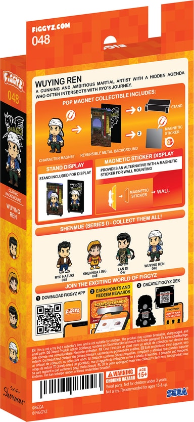 First 4 Figures Figgyz Shenmue Magnet actionfigur har en vendbar bakplate i metall som gir to visningsalternativer, en figur i pikselkunststil, magnetisk 3D-pop-out-effekt, en display-base og et magnetisk klistremerke.Les mer om produktet