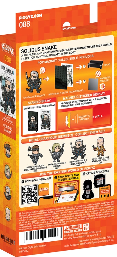 First 4 Figures Figgyz Metal Gear Solid 2 Magnet actionfigur har en vendbar bakplate i metall som gir to visningsalternativer, en figur i pikselkunststil, magnetisk 3D-pop-out-effekt, en display-base og et magnetisk klistremerke.Les mer om produktet