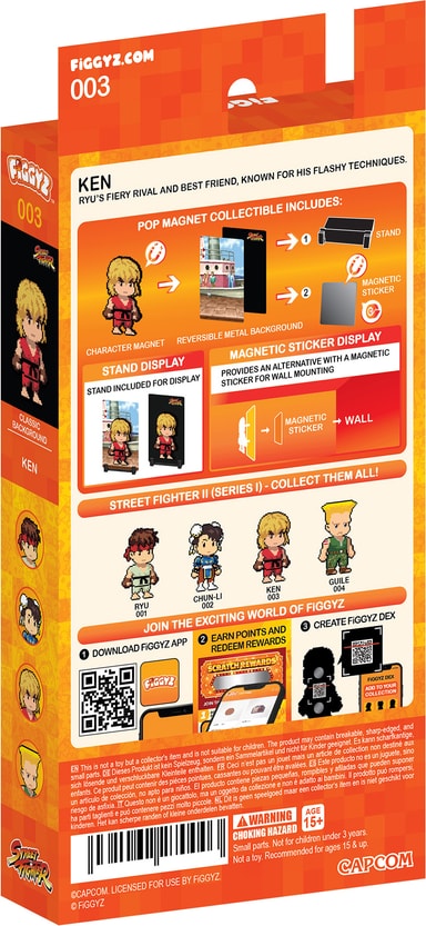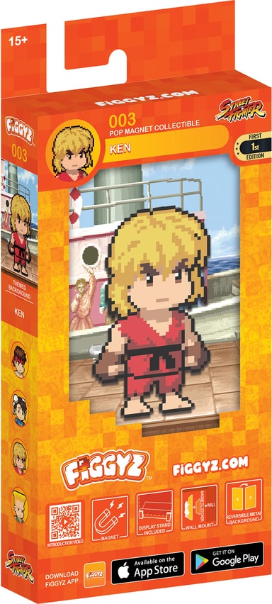 First 4 Figures Figgyz Street Fighter 2 Pop Magnet actionfigur har en reversibel bakplate av metall for to visningsmuligheter, en pixel-stilart karakter, 3D magnetisk pop-out- effekt, displaybase, og et magnetisk klistremerke.Les mer om produktet
