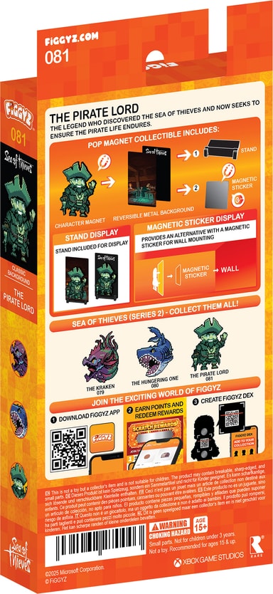 Her har du First 4 Figures magnetisk actionfigur av The Pirate Lord, den legendariske oppdageren som fant Sea of Thieves. Den har en 3D pop-out effekt med MagMounts, og består av en hyllebase og magnetisk klistremerke for fleksibel, reversibel visning.Les mer om produktet
