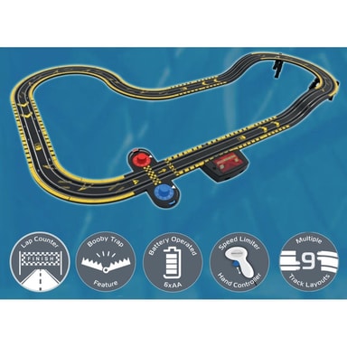 Analog bilbane i 1:64 skala, inneholder 2stk biler, 1stk Lamborghini og 1stk Porsche. Banelengde på 350cm og mulighet for 9 forskjellige layouts. Håndkontroller med 4 forskjellige hastighetsinnstillinger slik at også banen egner seg for nybegynnere og de aller yngste. Banen går på 6xAA-batteri.
