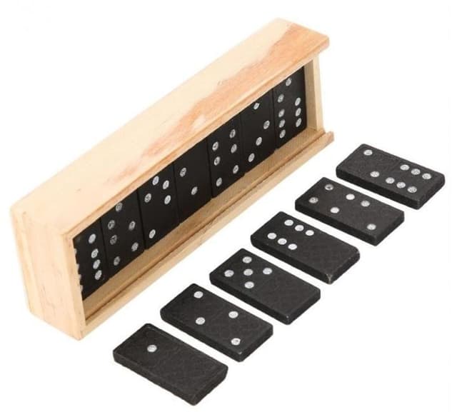 Klassisk dominospill som leveres i en fin liten treboks.Hvordan fungerer det?
