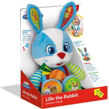 Denne myke leken har også mange funksjoner som er utviklet for å hjelpe barn med å lære bokstaver, tall, noen ord og dyrelyder ved hjelp av læringstastene som er plassert på labbene.