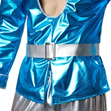 Guttekostymet Disco master består av tofarget, blank tekstil. Den blå overdelen har dyp halslinning med sølvfarget bord og ståkrage. Armene har også oppbrett med doble sølvborder. På fremsiden har blusen en liten splitt.Les mer om produktet