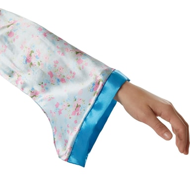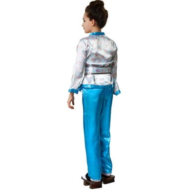 Jentekostymet Henførende Yuki består av en overdel og en bukse i tillegg til et belte av sateng. Den tradisjonelt viklede overdelen har et diskré blomstermønster og en lyseblå kant. Ermene er vide i enden og er også pyntet med en lyseblå kant.Les mer om produktet