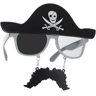 Løsne fortøyningen og velkommen ombord med lekebrillen pirat med snurrebart. Bøyelige innfatning, lav vekt og det tøffe utseendet gjør disse brillene til det perfekte tilbehøret. Dødningehodet med sabler og bart får alle ferskvannsmatroser til å blekne av misunnelse.