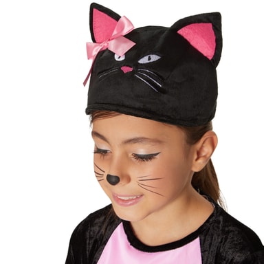 • Kattekostyme i svart plysj med rosafargede effekter
