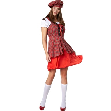 Den unge skottejenta ter seg kokett og selvsikkert. I kampen om den mest populære gutten fra naboklanen har du gode sjanser med det korte skjørtet i typisk skotsk mønster og med vesten med gullfarget bord. Hjerteknuseren din har sikkert lagt sine øyne på deg allerede. Så rett på luen og kos deg. «Vær kul» er skottejentas motto.