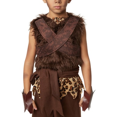 Guttekostymen Vill steinaldergutt består av en ensfarget langbukse med elastisk linning og en ermeløs vest med flekker. Over dette har han enda en vest besatt med kunstig skinn og to reimer, som løper diagonalt på fremsiden.Les mer om produktet