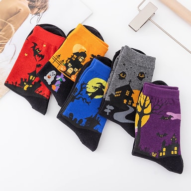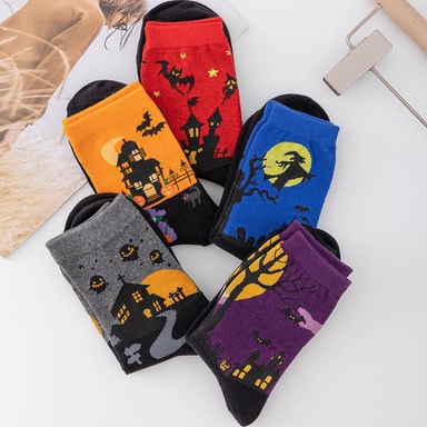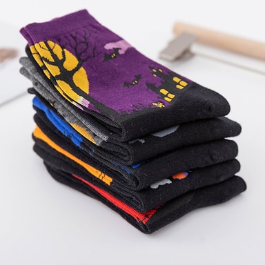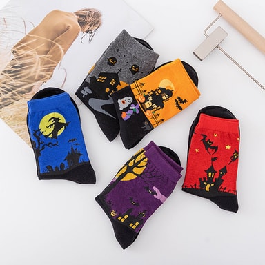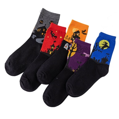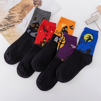 • Fargerike søte dyredesignmønstrede fritidssokker i bomull 5-par 5-par Halloween sokker