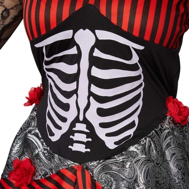 Damekostymet «Nifs danserinne» er en kort kjole med smal midje, som er noe lenger bak enn foran. Over skjelettrykket på midten er det festet en liten hodeskalle på to fløyelsstykker. De lange ermene og bluseinnlegget er laget fullstendig av blonder.Les mer om produktet