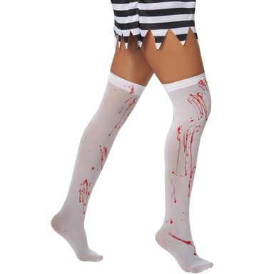 Kvinneantrekket Nifs fengselsbrud har svarte og hvite striper. Skjørtesøm og ermer er frynset i endene. Mange blodflekker. Figurvennlig passform. Med knestrømper og hatt. Materiale: 100 % polyester.Les mer om produktet
