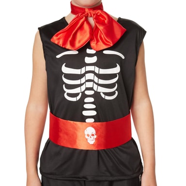 Guttekostymet nifs gentleman består av bukse med elastisk linning, jakke og ermeløs skjorte med påtrykt skjelett. Buksebeinene har doble, sølvfargede blondeborder, og det samme har kragen, ermene og forstykket.Les mer om produktet