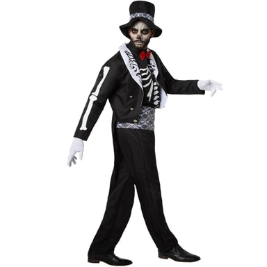 Mannsantrekket Nifs Gentleman er i svart og hvitt, med røde innfellinger. Det har en lang bukse med elastisk linning og en kortermet skjorte med glidelås over hele ryggen. Påtrykt skjelett- og hjertemotiv på fronten.Les mer om produktet