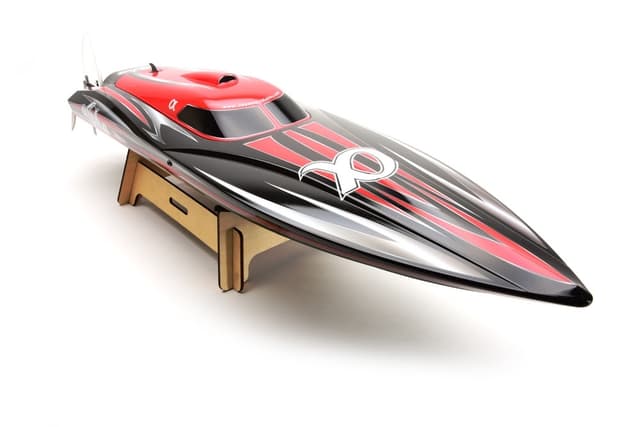 Joysway alpha er en stor v-bunner med totallengde på 106cm! Båten leveres med kraftig vannkjølt børsteløs motor og fartsregulator. Det følger med 2 ulike propeller man kan velge alt etter batterier man ønsker å bruke, maksfart er på over 80km/h om man velger 6s lipo.i esken til joysway alpha er det med to ulike propeller, den ene er for 4s-oppsett og den andre for 6s-oppsett. Ved bruk av 4s lipo (2x2s) har båten en toppfart på 60km/h og bruker man 6s (2x3s) vil man kunne oppnå en hastighet på hele 80km/h. Merk at dette ikke er en nybegynnerbåt og man bør ha god kunnskap om både radiostyrte båter og lipo-batterier før man tar i bruk dette produktet.
