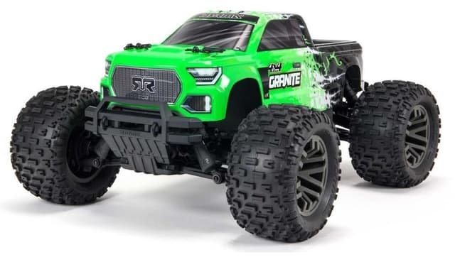 Granite monstertruck fra ARRMA, her med børsteløst motoroppsett som tåler opp til 3s. Granite er en artig og morsom modell i 1/10-størrelse, spesielt her i BLX-versjon. Leveres ferdig montert, lakkert karosseri og klar til bruk med unntak av batteri(2-3s LiPo med IC5/EC5-kontakt), lader og 4 AA-batterier til radio, se anbefalt tilbehør. Modellen har vannbestandig elektronikk (følg produsentens retningslinjer for bruk i våte omgivelser).