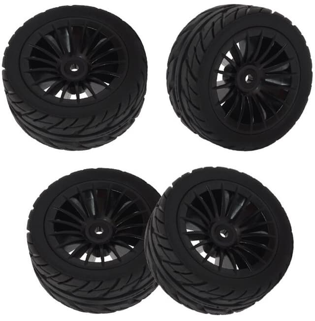 UDI-1604-005A Touring Tires. Leveres 4stk myke dekk på felg. Passer til alle 1/16 UDI-biler (orginal UDI Rally-felg).