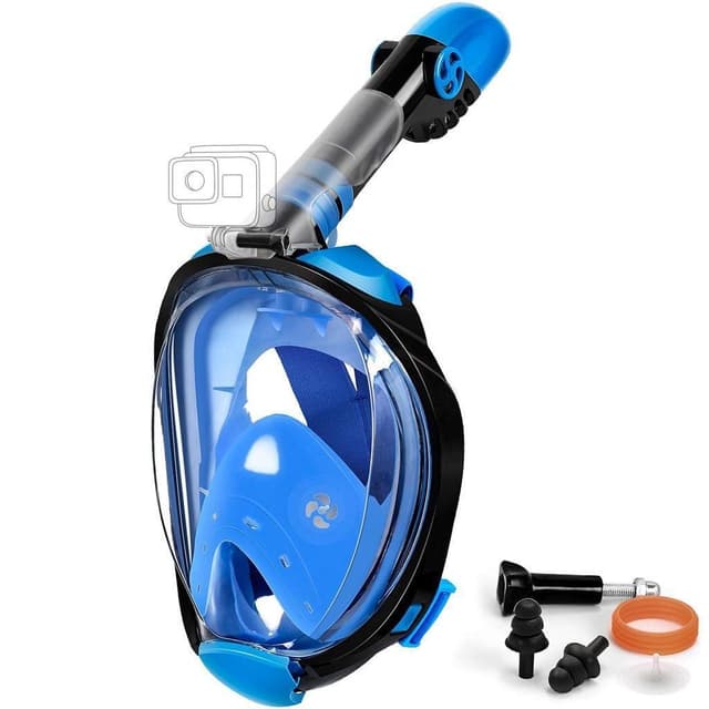 Den fullstendige maskehalsen er tett og sikker takket være silikonforseglinger og spennen kan løsnes raskt og enkelt om nødvendig. Snorkelmasken kommer i en praktisk oppbevaringspose og tilbehør som en avtakbar GoPro-brakett.
