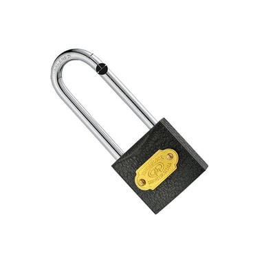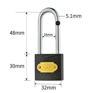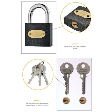 Gir pålitelig sikkerhet med sin robuste jernkonstruksjon og lange sjakkel.