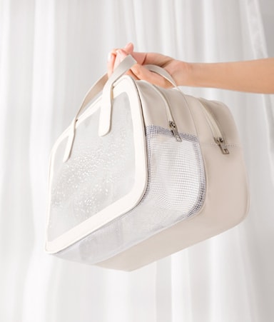 Med en tørr-våt separasjonsdesign, gir posen organisert oppbevaring av både tørre og våte gjenstander. Med to lag og et romslig interiør gir vesken god plass til toalettsaker, kosmetikk og andre nødvendigheter.