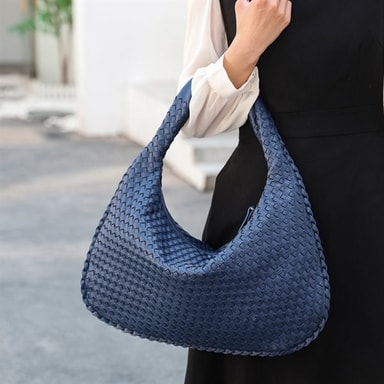 Den unike designen med et komfortabelt topphåndtak og et sjenerøst ermhull gjør at vesken sitter perfekt på skulderen. Det vevde mønsteret gir et sofistikert uttrykk som passer både til hverdag og fest, noe som gjør vesken til et must i enhver garderobe.