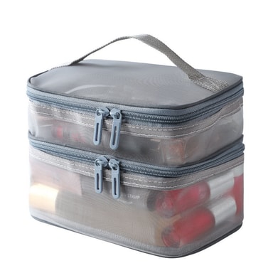 • Kosmetikkveske med dobbelt lag i netting Grå