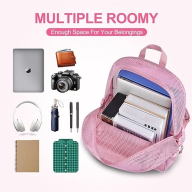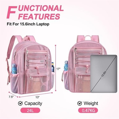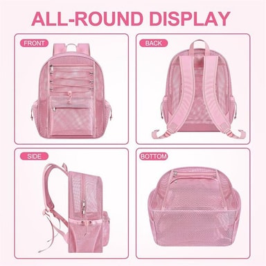 Med målene 40 x 32 x 14 cm har ryggsekken god plass til alt fra treningsklær og bøker til hverdagslige ting. De justerbare skulderstroppene gir en behagelig passform, mens det gjennomsiktige nettingmaterialet gir et moderne og luftig utseende.