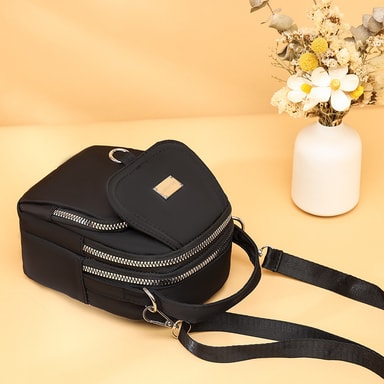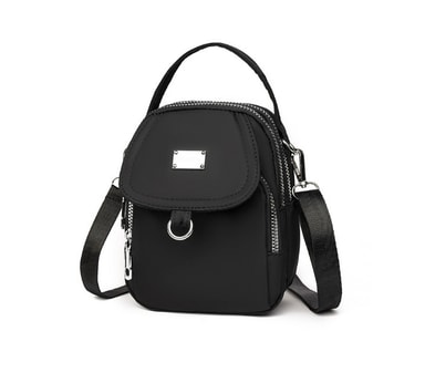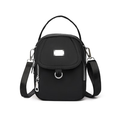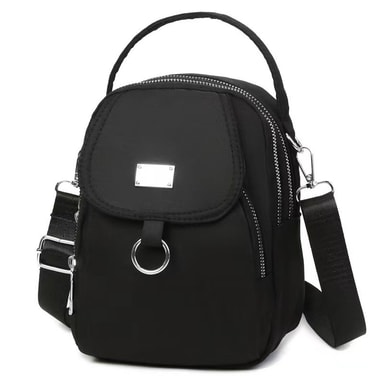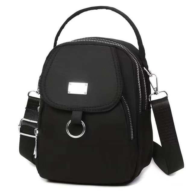 • Trippellags nylon crossbody-veske for kvinner Sort
