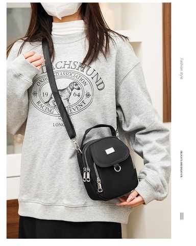 Lett og kompakt, den er perfekt for å bære nødvendigheter som byttepenger, nøkler og leppestift. Har en frontlomme med glidelås, øretelefonhull og fire oppbevaringslag for enkel organisering.Les mer om produktet