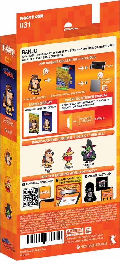 First 4 Figures Figgyz Banjo Kazooie Magnet actionfigur har en vendbar bakplate i metall som gir to visningsalternativer, en figur i pikselkunststil, magnetisk 3D-pop-out-effekt, en display-base og et magnetisk klistremerke.Les mer om produktet