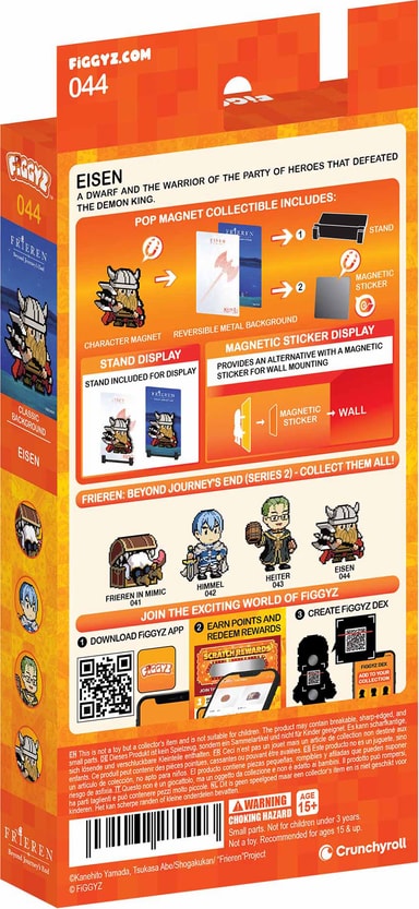 First 4 Figures Figgyz Frieren Magnet actionfigur har en vendbar bakplate i metall som gir to visningsalternativer, en figur i pikselkunststil, magnetisk 3D-pop-out-effekt, en display-base og et magnetisk klistremerke.Les mer om produktet