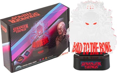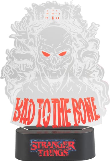Grupo Erik Stranger Things USB-lampe har en fast lysmodus og en enkel knapp på toppen for enkel betjening. Den er laget av ABS og metakrylat, og drives av 3 AAA-batterier eller med den medfølgende USB-C-kabelen.Les mer om produktet