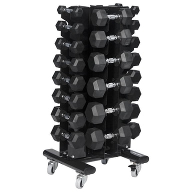 En praktisk manualstativ som rommer hele 14 par manualer fra 1-20 kg. Fire låsbare hjul er inkludert, noe som gjør det enkelt å flytte hele manualpakken. OBS! Manualer er ikke inkludert. Dimensjoner: 51 x 58 x 120 cm.Les mer om produktet