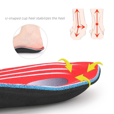 Forbedret buestøtte: Disse innleggssålene gir eksepsjonell støtte for flate føtter og lave buer, og hjelper til med å lindre smerte og ubehag forårsaket av plantar fasciitt, overpronasjon og andre fottilstander. Den målrettede buestøtten fremmer riktig fotjustering og biomekanikk, og forbedrer generell komfort og stabilitet under daglige aktiviteter.